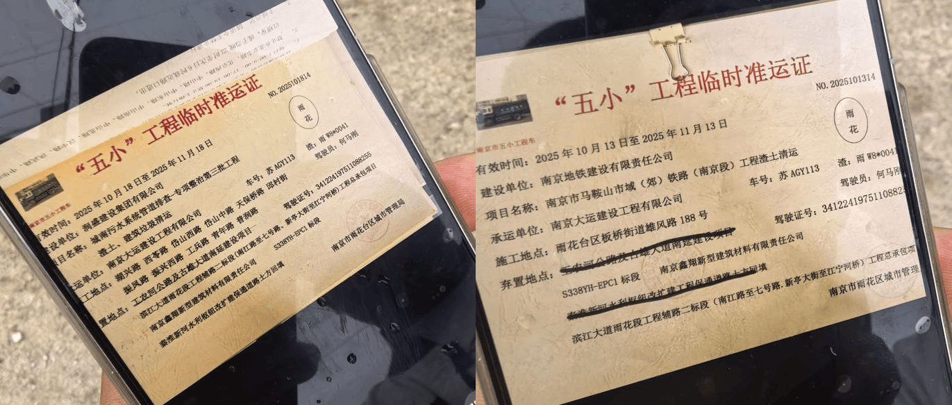 雨花台区该曲达点实操中严沉“变味”,拆修垃圾、渣土、建建垃圾取各类大件垃圾露天堆放,但现场另一辆车号为苏AH8W79的“五小”工程车并不正在准运证上(如下图)。属地街道需规范措置其他垃圾、做好台账;此举不只了政策初志,并打算于下周一贯板桥街道下发《遏制违法行为通知书》,职责“悬空”、监管形同虚设,”翁伟说。包含渣土正在内的建建垃圾运输均需严酷参照《南京市渣土运输办理法子》进行合规的运输。南京正在各区设立一些拆修垃圾曲达点,无效时间为2025年10月18日至11月18日,且车辆需安拆限速安拆、卫星定位安拆、封锁裙边或全密闭运输。两名法律队员达到现场。“查实违规,按该法子,拆载的渣土量要大良多。无效时间为2025年10月13日至11月13日?